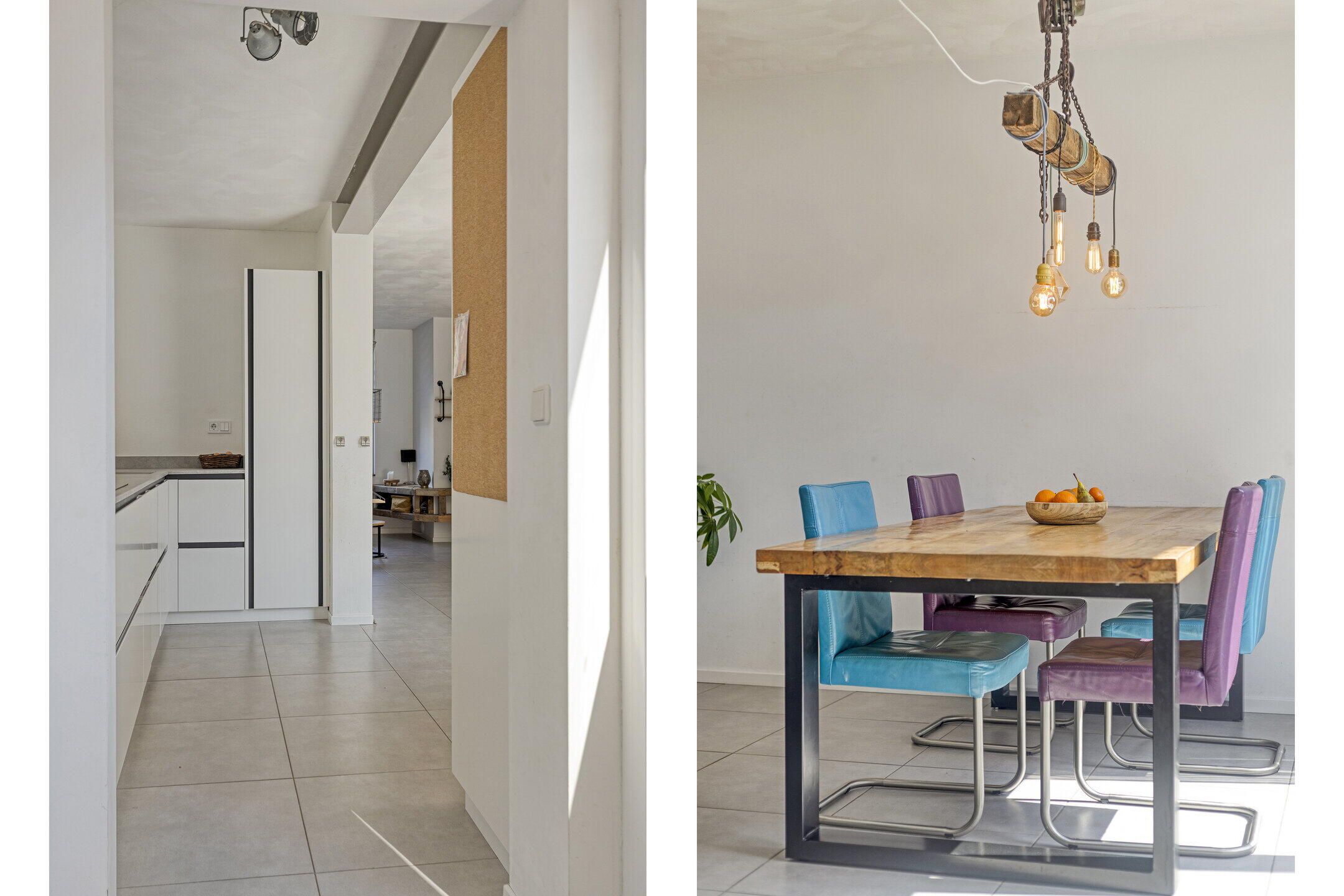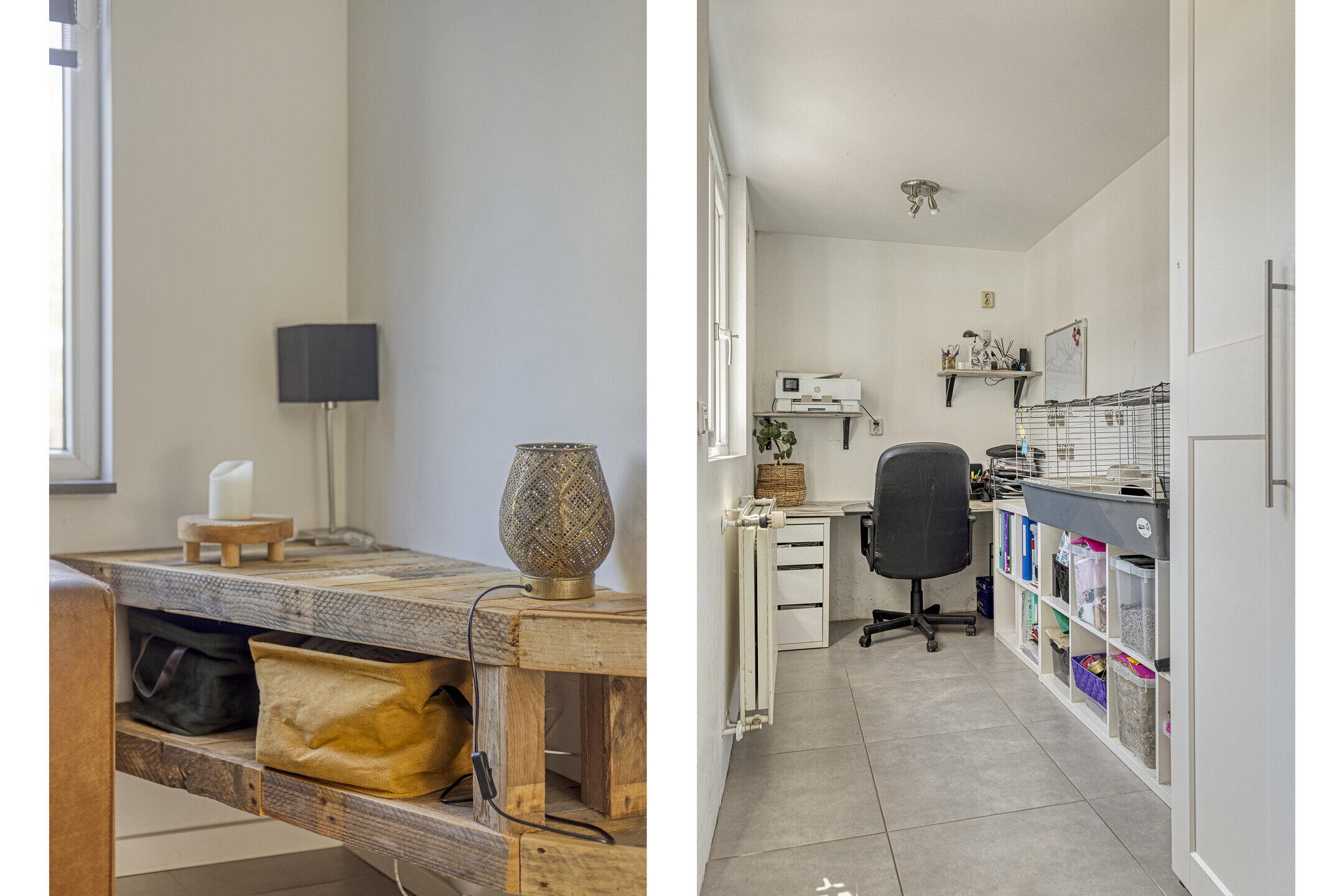 Achter de keuken bevindt zich een extra werkkamer: een lichte, netjes afgewerkte ruimte met toegang tot de tuin. Ideaal als thuiswerkplek of kantoor aan huis.