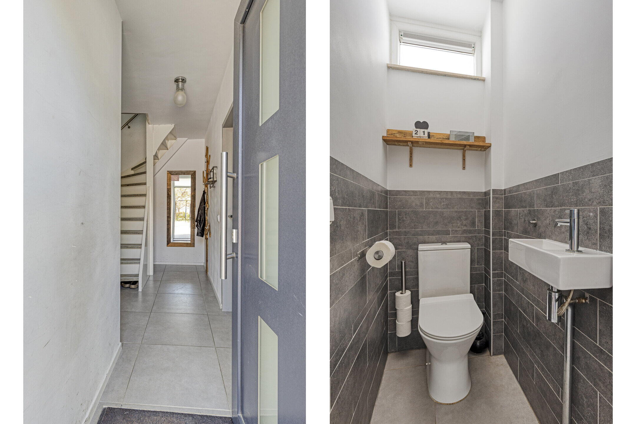 Je parkeert je auto gemakkelijk op eigen oprit of in de garage. Via de hal krijg je toegang tot het toilet, de meterkast, de trapopgang naar de eerste verdieping, de garage én de woonkamer. Een praktische en verzorgde binnenkomst die direct een prettige indruk geeft.
